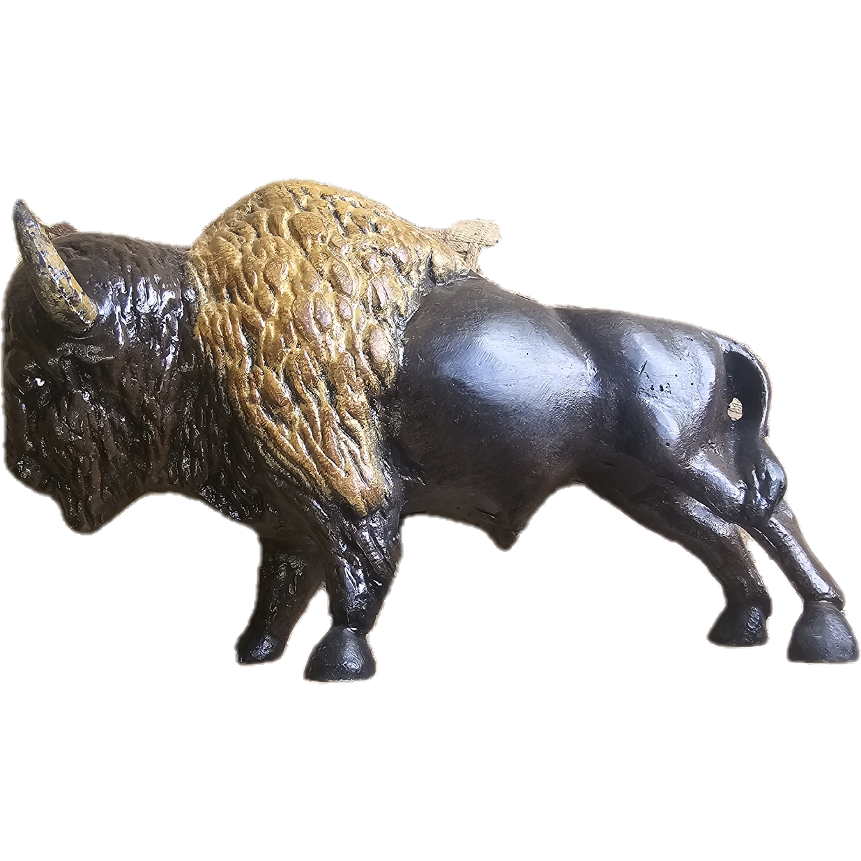 This Buffalo is made and built from the finest quality of cast aluminum. It goes through a curing process after it comes out of the mold which makes the statue retain a high degree of durability and last a lifetime. The statues are lightweight and can be moved with ease. The statues will not rust and can be used indoors or outdoors.